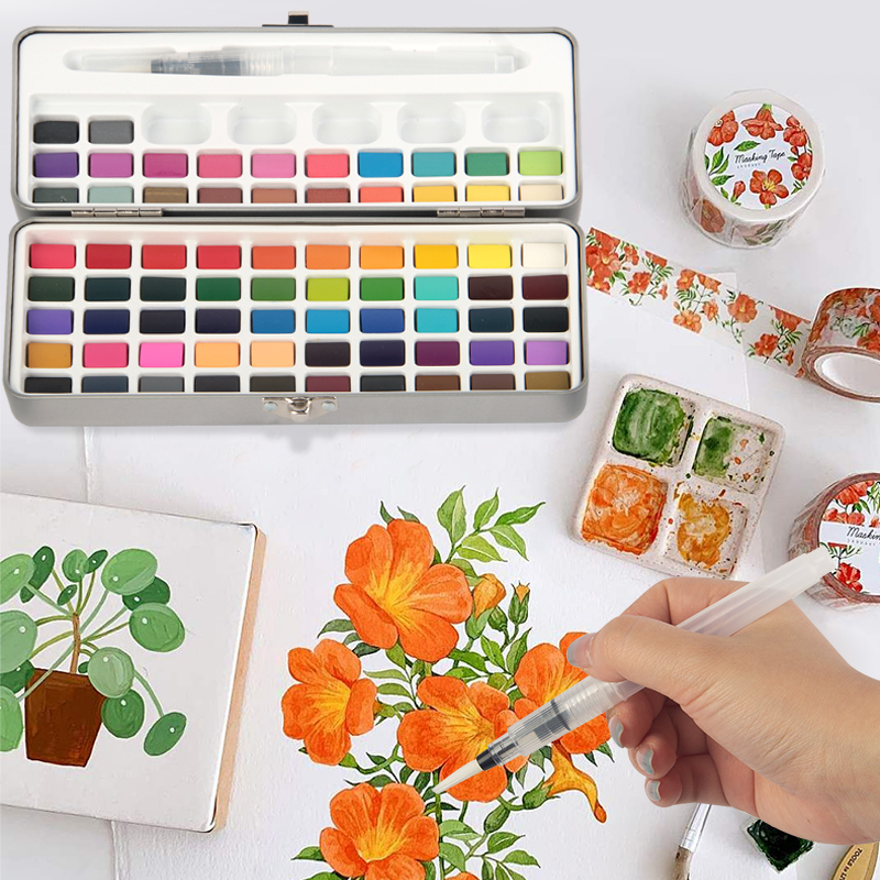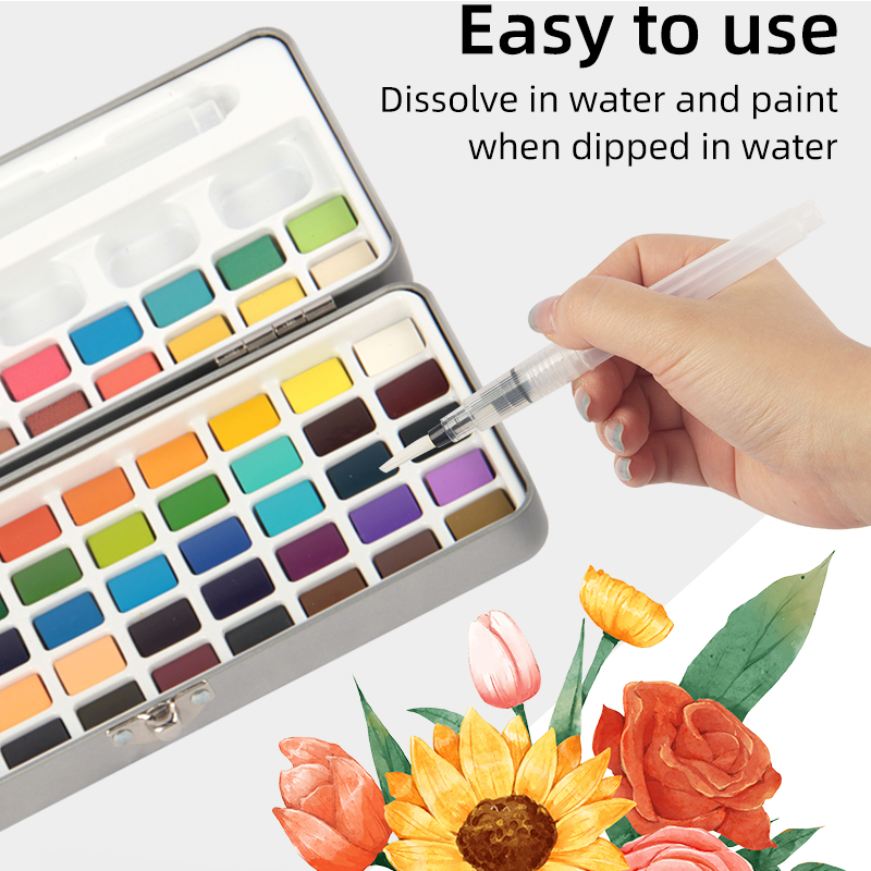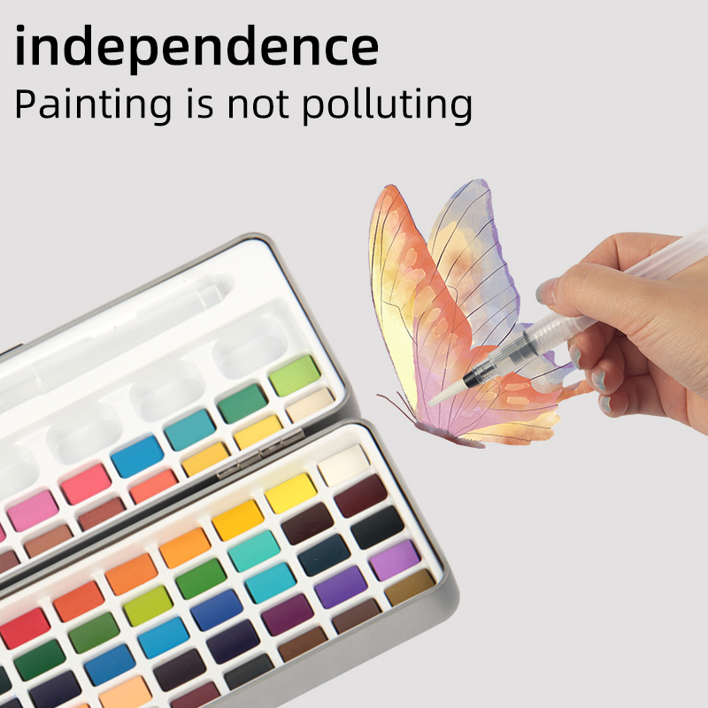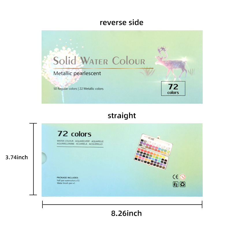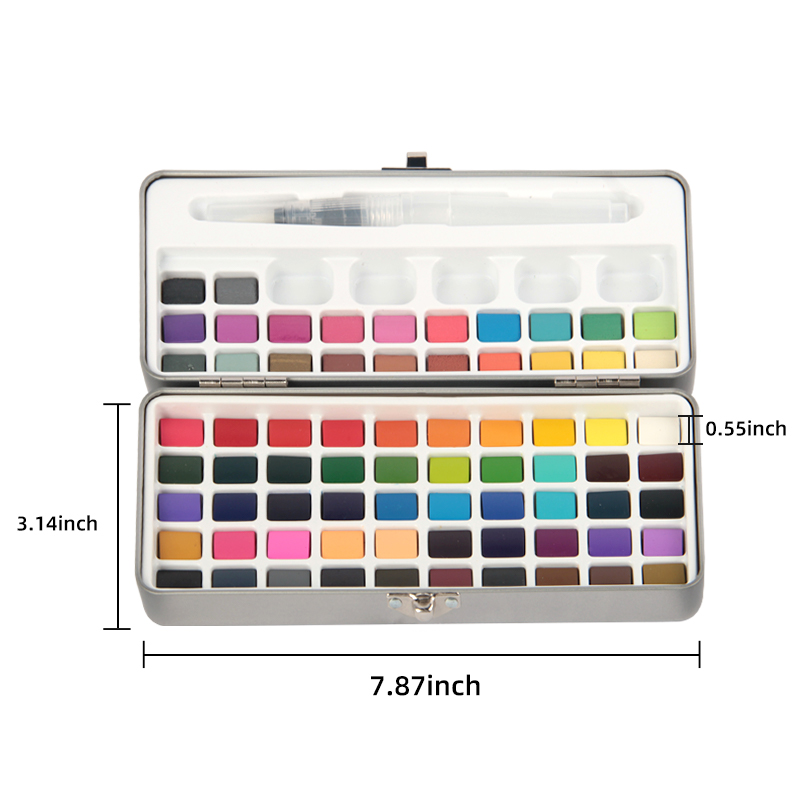 तपाईं हाम्रो कारखानाबाट उपहार बक्सको साथ 72 रंगको वाटर कलर पेन्ट सेट किन्नको लागि ढुक्क हुन सक्नुहुन्छ। ट्राभल वाटर कलर सेट सबै-इन-वन वाटर कलर ब्रसको साथ सेट। हल्का तौल र बलियो धातु टिन बक्सले यसलाई अन-द-गो पेन्टिङको लागि उत्तम बनाउँछ। तपाईं बिल्कुल कहीं पनि रंग गर्न सक्नुहुन्छ। घर भित्र, ग्रामीण इलाका, पार्क, समुद्र तट, बगैचा र शहर।